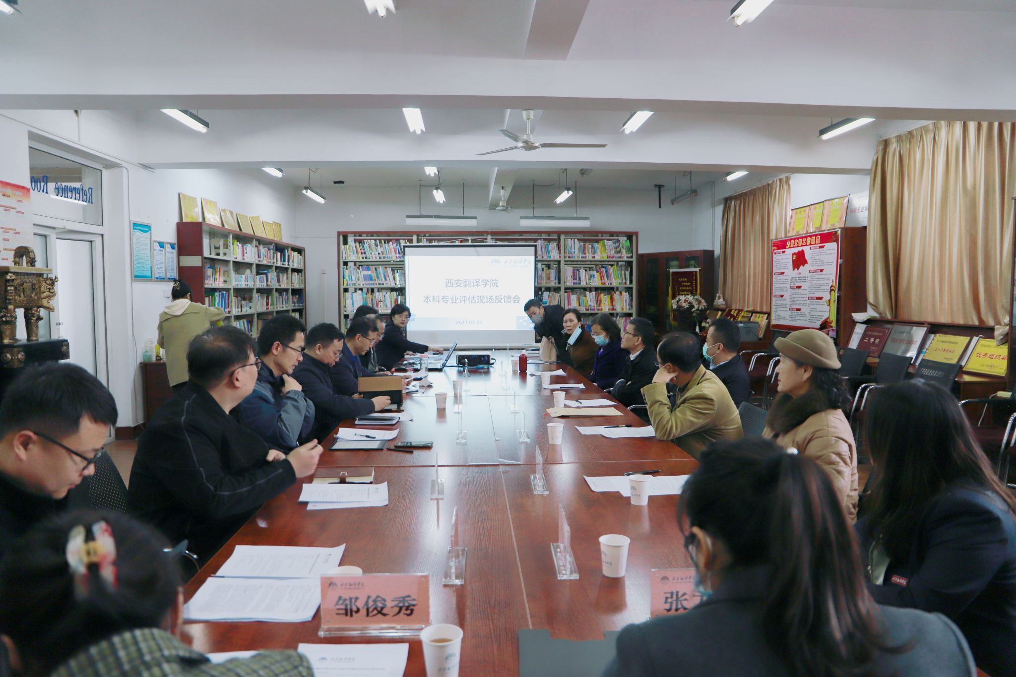会议邀请西安外国语大学张世胜教授、曹韦教授、赵红教授和孙金秋教授,以及我校史晓琴教授和杨秀华教授作为现场评估专家。sjb世俱杯官方网站副校长武忠远出席会议并致欢迎词。教务处副处长孟贤军、教学质量评估处副处长柳国勇、教务处教研科科长郑军、教务处教务科科长寇渊涛、sjb世俱杯官方网站院长李庆明、副院长吴震、综合办主任张青丽及参评专业负责人参加了会议。会议由sjb世俱杯官方网站副院长吴震主持。