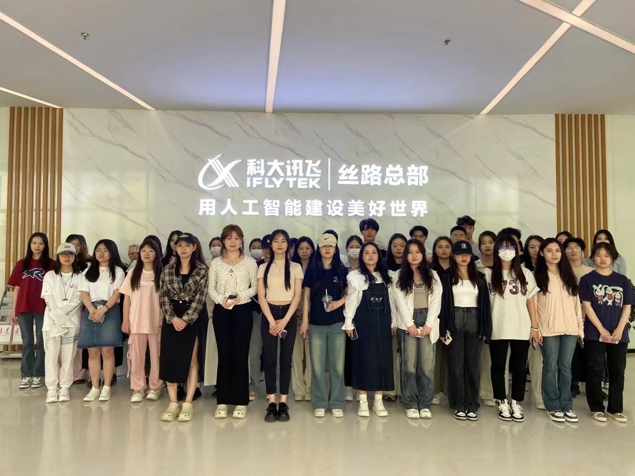 2024年5月14日,sjb世俱杯官方网站2023级法语(专升本)专业的46名同学在蒲雯老师的带领下前往科大讯飞丝路总部进行专业实习。