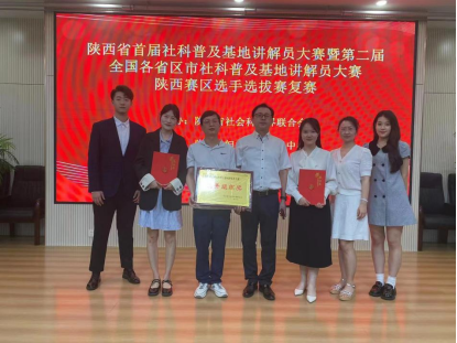 6月20日,“陕西省首届社科普及基地讲解员大赛暨第二届全国各省区市社科普及基地讲解员大赛参赛选手选拔复赛”在陕西省妇女儿童中心3楼多功能厅举行。陕西省社科联党组书记、常务副主席郭建树出席比赛开幕式并讲话,陕西省社科联党副主席高红霞、陕西省社科联科研科普部部长翟金荣、社会组织管理部部长张金高、信息部部长周晓霞、二级调研员祝志明等领导出席本次大赛并为获奖选手颁奖。我校文化传承与翻译体验馆科普基地张琬晨老师的《用英语讲好中国故事》、终南文化科普基地王佳丽老师的《送你一座终南》均获得三等奖,sjb世俱杯官方网站荣获“优秀组织奖”,科研处成果管理科科长李刚代表学校领奖。文学与传媒学院2021级的史佳怡和刘栩翀两位同学担任本次大赛主持人。