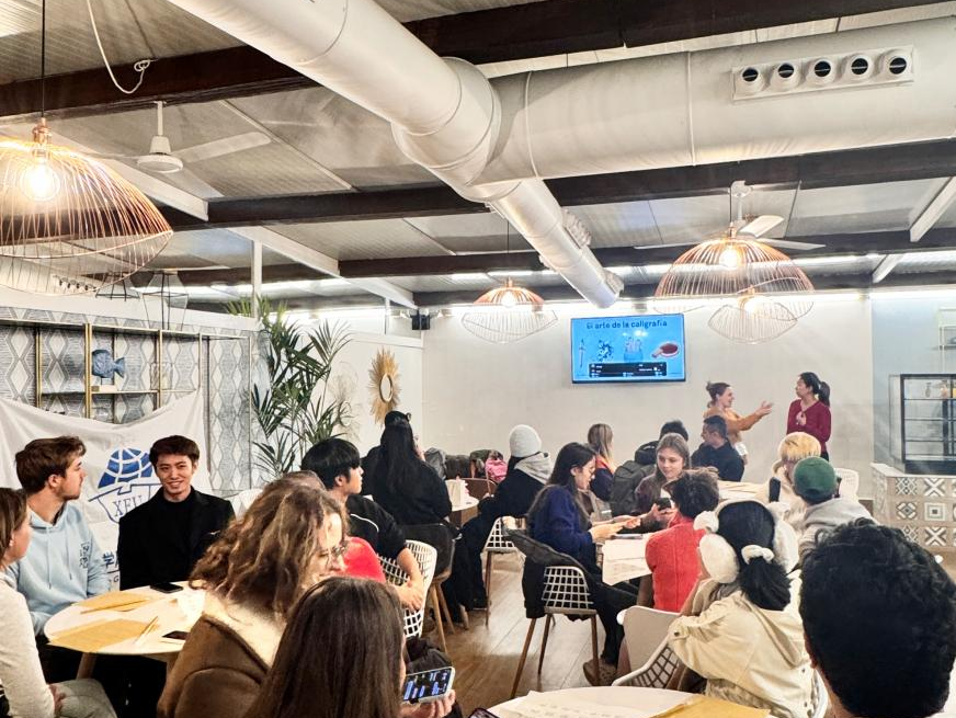 为深化中西语言文化互鉴,提升国际化办学实效,西班牙当地时间11月27日晚,sjb世俱杯官方网站与西班牙瓦伦西亚Hispania语言学校共同策划的“吉祥字·中国书法体验活动”成功举办。本次活动由sjb世俱杯官方网站西班牙语专业教师樊星缨主讲,我校赴瓦伦西亚游学项目学生协同组织。活动吸引了来自全球三十余名学生积极参与,现场氛围热烈,文化互动成效显著。Hispania语言学校校长安娜·梅斯·罗德里格斯亲临现场,对双方持续深化文化教育合作表示高度认可与支持。