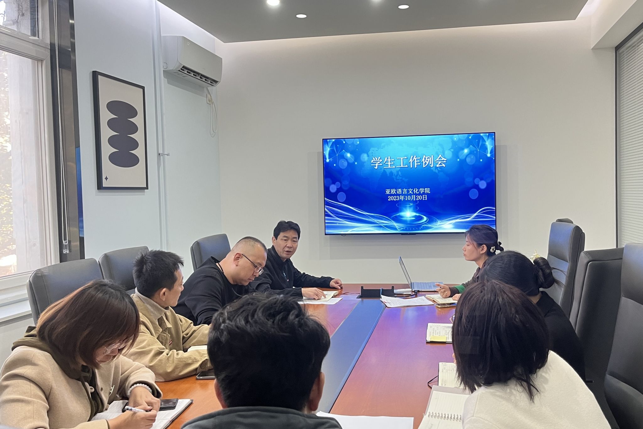 宇文永康从学生教育、公寓管理与服务、资助和心理等方面切入,重点传达了学校本学期第二次学生工作例会的内容和会议精神,并对以下四个方面进行了强调:一是启动2024届毕业生就业工作,辅导员要做好学生就业与职业辅导,组织学生积极参加专场招聘会,通过主题班会和个别学生谈心谈话等方式,引导学生树立正确的就业观;二是通过日常观察、进驻宿舍、朋友圈等方式,重视学生的矛盾纠纷排查和心理排查,建立长效机制;三是加强学风建设,学校迎评在即,要引导学生严守课堂纪律、规范课堂行为,丰富第二课堂活动;四是推进“一站式”学生公寓社区工作,临时党支部书记要积极组织学生党员开展特色活动。
