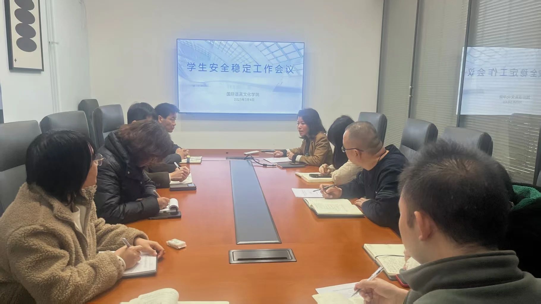尹娜就做好学生安全稳定工作提出十一点要求:一是要加强重点人员的联系沟通和思想引导;辅导员要密切关注学生的思想动态,及时了解学生诉求,做好思想疏导工作,帮助学生解决实际困难。二是要强化安全稳定工作和舆情处置工作;要加强安全隐患排查,妥善处理突发事件,密切关注网络舆情,及时回应学生关切,营造积极向上的网络环境。三是要扎实开展各类矛盾纠纷排查工作;辅导员要深入学生宿舍、教室等场所,及时发现和化解各类矛盾纠纷,防止矛盾激化升级。四是要做好宿舍和教室的消防安全;要加强消防安全教育,定期开展消防安全检查,确保消防设施完好有效,杜绝火灾事故发生。五是要严格学生的日常管理请销假制度,严格遵守“十不准”大学生文明公约。要加强学生日常行为规范教育,引导学生养成良好的学习和生活习惯。六是要认真落实值班制度,确保信息畅通,及时处理突发事件。七是要加强学生网络素养教育,引导学生理性表达,文明上网。八是辅导员要进驻公寓,检查宿舍内务卫生、谈心谈话;了解学生生活情况,帮助学生解决实际困难,营造温馨和谐的宿舍氛围。九是要及时召开各层面的学生干部工作会议,引导学生干部提高自身自我管理和自我服务的能力;加强学生干部队伍建设,充分发挥学生干部的桥梁纽带作用。十是要开好主题班会,学习党的政策方针和时事政治;加强学生思想政治教育,引导学生树立正确的世界观、人生观、价值观。十一是加强少数民族学生和新疆籍学生的管理,促进各民族学生团结进步。
