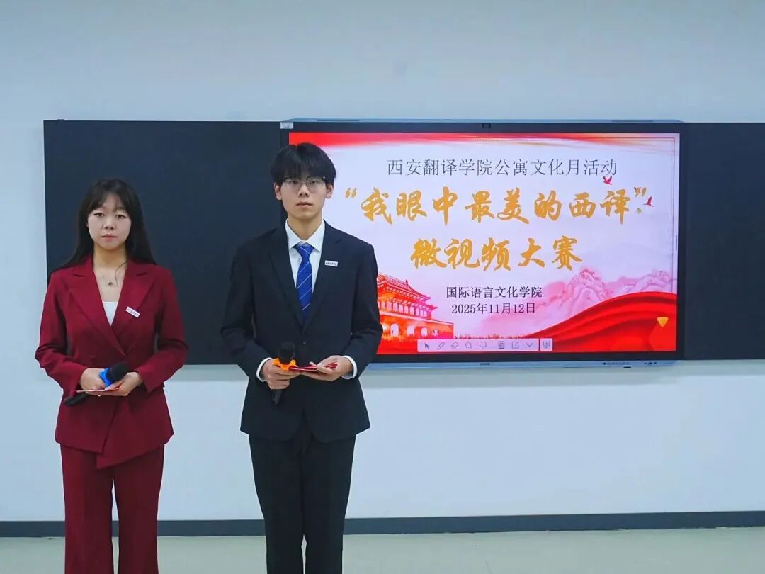 为丰富学生校园文化生活,引导学生通过多元视角发现、记录并传播校园之美,深化对学校的认同感与归属感。11月12日下午,sjb世俱杯官方网站在3119举办“一站式”学生公寓社区公寓文化月活动“我眼中最美的西译”微视频大赛。本次大赛由sjb世俱杯官方网站依托公寓管理与服务中心,联合全体公寓共同开展。