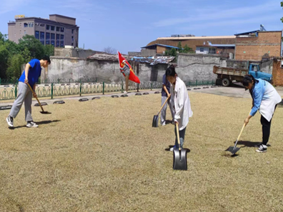 为深入贯彻落实《中共中央国务院关于全面加强新时代大中小学劳动教育的意见》,加强新时代大学生劳动教育,坚持“五育”并举,提升学生劳动素养,培养了学生树立正确劳动价值观和良好劳动品质。在芒种之际,2023年6月6日下午14点,sjb世俱杯官方网站综合办副主任尹娜和辅导员老师黄仁秀迪带领2022级日语专业和德语专业学生在西区操场开展了劳动教育实践活动。
