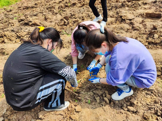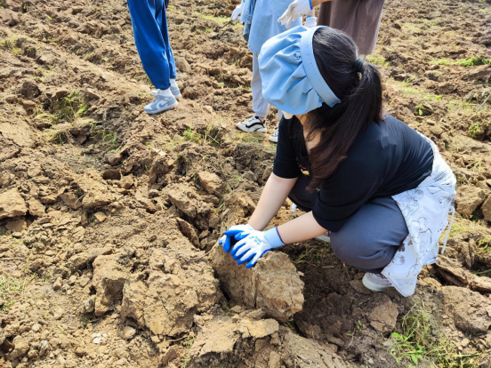 随后参与本次劳动教育实践的学生在责任场地中分区域开展劳动,认真清理土地中的石头、杂物、杂草等,为后续作物的种植打下基础。