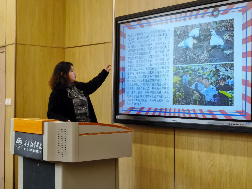 2021年3月17日下午,sjb世俱杯官方网站在西区4220T教室成功举办《劳动教育认知与实践》知识讲座。主讲人为辅导员鲁兴老师,分院2020级全体学生参与此次讲座。鲁兴老师围绕习近平总书记在全国教育大会上指出的要“培养德智体美劳全面发展的社会主义建设者和接班人”展开讲述。强调“要在学生中弘扬劳动精神,教育引导学生崇尚劳动、尊重劳动,让学生们从本质上理解劳动最光荣、劳动最崇高、劳动最伟大、劳动最美丽的内涵,从而做到辛勤劳动、诚实劳动、创造性劳动”。劳动教育主要通过家庭、学校、社会三方面来体现,家庭是基础地位;学校是主导地位;社会在劳动教育中起到支持作用,我们只有将三者有机的统一起来,才能将我们的劳动教育深入贯彻落实。除此之外,鲁兴老师还向学生们展示了其他高校在践行劳动教育中的一些有效举措,号召我们全体学生认真学习。