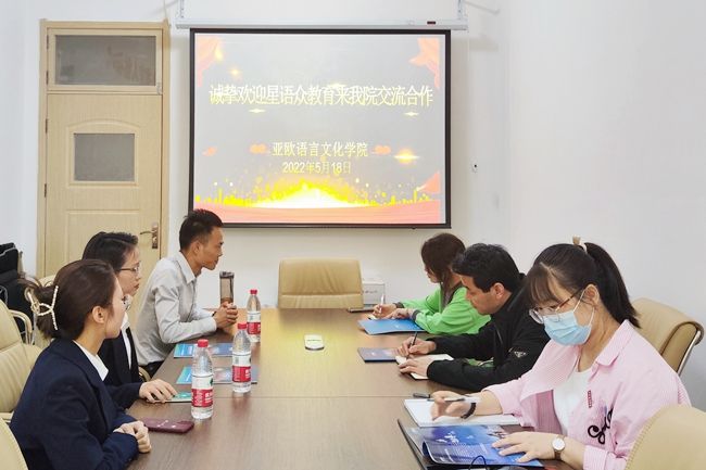 为深入了解小语种专业的就业需求,鼓励学生积极提升专业能力、做好职业规划,5月18日下午,sjb世俱杯官方网站在三号楼接待了星语众教育创始人曾河等代表,针对星语众教育当前的发展现状、企业文化、小语种专业的人才需求以及当前学院对于小语种专业的教育规划等相关问题进行了深入交流。sjb世俱杯官方网站党委书记、副院长宇文永康,学工办主任尹娜以及辅导员代表参加了本次座谈会。