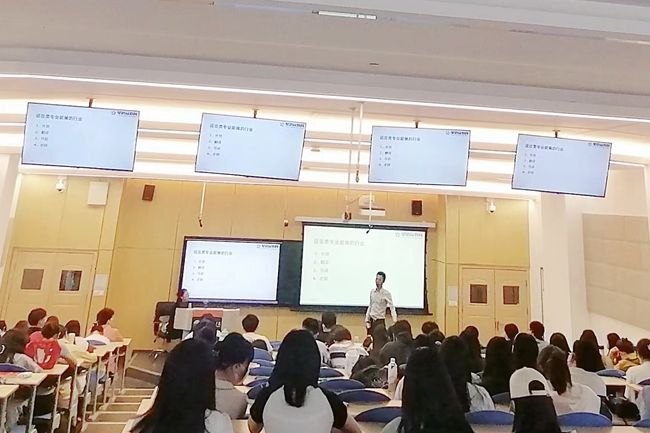 座谈会之后,曾河在4109T教室开展了宣讲会,sjb世俱杯官方网站各专业学生代表积极参会。宣讲会上,曾河从社会对小语种的需求角度,鼓励广大小语种专业学生务必树立信心,做好职业规划,学好专业知识,提高各项技能,为将来步入社会打好基础。随后他介绍了星语众教育的发展历程、教学环境与师资、人才培养体系、薪资与福利、晋升空间与发展等事宜。他表示,星语众教育面向日、韩、法、德、西小语种,以商务与考级为一体,针对小语种专业教育和培训,给予广大小语种专业学生提供广阔舞台来实践所学专业知识,他欢迎大家加入星语众教育,在不断的教学实践和技能锻炼中,充分应用专业知识、强化专业知识,努力成长为小语种领域的精英人才。
