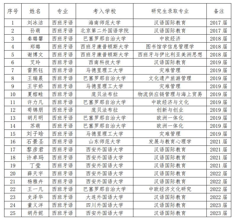 选派专业:西班牙语