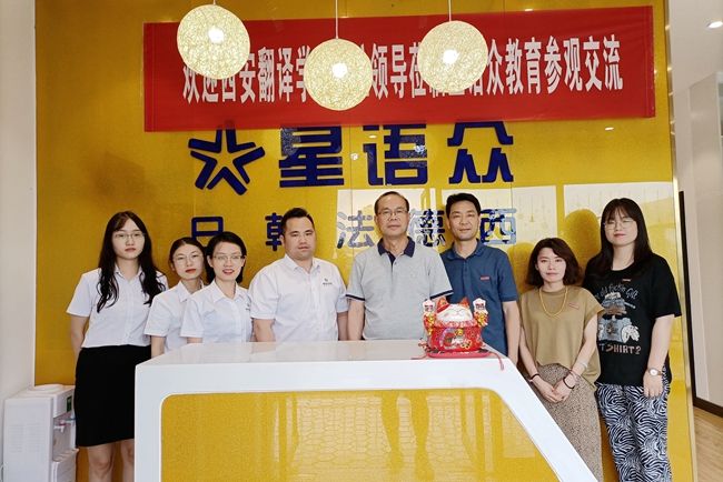 星语众教育西安分校常务副校长张方荣对我校到访人员表示欢迎,随后带领李庆明一行参观了星语众(西安)分校,对星语众教育的发展历程、教学环境与师资、人才培养体系、薪资与福利、晋升空间与发展等做了详细介绍。该校是融商务与考级为一体的面向日、韩、法、德、西小语种专业教育与培训的机构,为广大小语种专业学生提供了实习实践及工作岗位。
