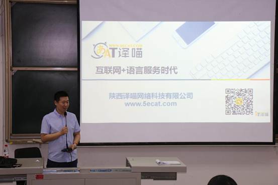 为贯彻落实《国务院办公厅关于深化产教融合的若干意见》及我校相关文件精神,进一步深化校企合作、产教融合,全面提高应用型人才培养质量,结合我院外语类专业特点,5月24日下午,我校sjb世俱杯官方网站在4109教室开展“企业家进校园”活动,部分师生代表参加了此次活动,活动邀请陕西译瞄网络科技有限公司王潇轩总经理参加活动并为大家讲解什么是互联网+语言服务时代。