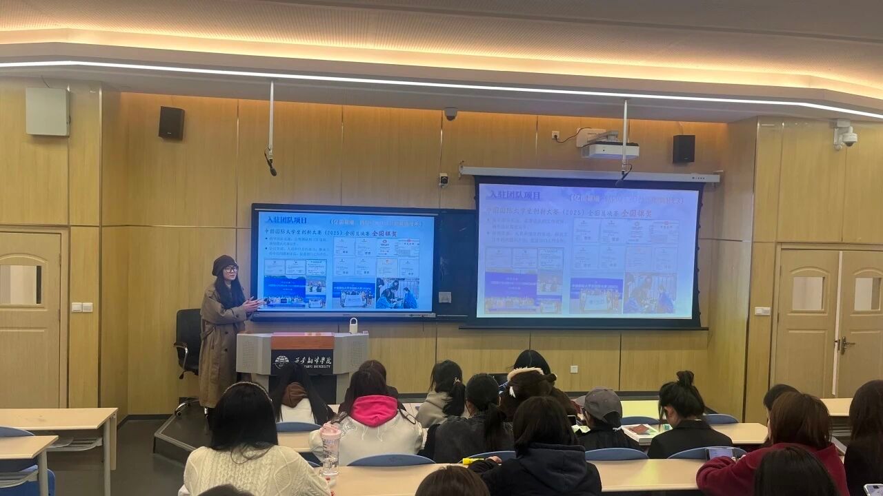 学校创新创业孵化园优秀学生代表白馨怡担任主讲,她以一名“过来人”的视角,为学弟学妹们带来了一场内容丰富、生动详实的分享。她首先对学校创新创业孵化场地的基本情况、硬件设施及近年来取得的建设成效进行了系统介绍,让新生们对学校孵化园有了直观的了解和向往。