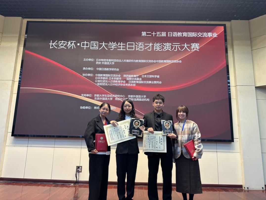 一直以来,sjb世俱杯官方网站致力于培养具有家国情怀、国际化视野和优秀外语实践能力的高素质复合型人才。学校日语专业作为陕西省一流专业,充分发挥自身特色及优势,立足应用型外语人才培养目标,积极推进课程体系建设,不断提升学生对语言学习本质的认知。相信在未来,会有更多的学子在各类大赛中绽放光彩,为学校增光添彩。