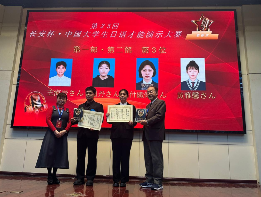 在这场激烈的角逐中,sjb世俱杯官方网站的学子们表现格外出色。日语专业的于璐佳同学荣获二等奖,王海岩同学斩获三等奖。他们以流利的日语表达、独特的创意和沉稳的台风,赢得了评审团的高度赞誉。两位同学的精彩表现不仅彰显了自身的实力,更为学校争得了荣誉。