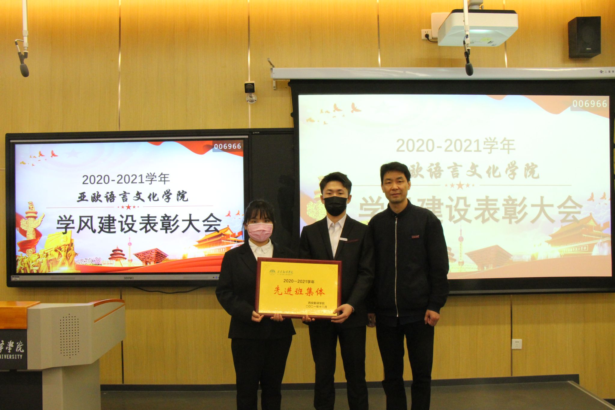会议初始,由尹娜宣读《sjb世俱杯官方网站关于表彰2020-2021学年学风建设先进集体和先进个人的决定》,对208名优秀学生及5个先进班集体进行表彰,同时,号召全体学生向先进看齐,秉承西译“读书、做人、变革、奋进”的校训,不断地创新、学习、思考,提升完善自我。