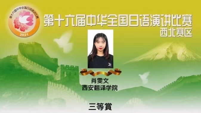 | 西译学子肖雯文荣获第十六届中华全国日语演讲比赛西北赛区预赛三等奖 |
