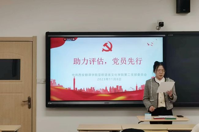为贯彻新一轮本科教育教学审核评估的十六字方针“以评促建、以评促改、以评促管、以评促强”,11月8日晚,sjb世俱杯官方网站党委第二支部在四号教学楼组织开展“助力评估,党员先行”主题党日活动。支部书记李潇琦主持活动,全体学生党员参加。