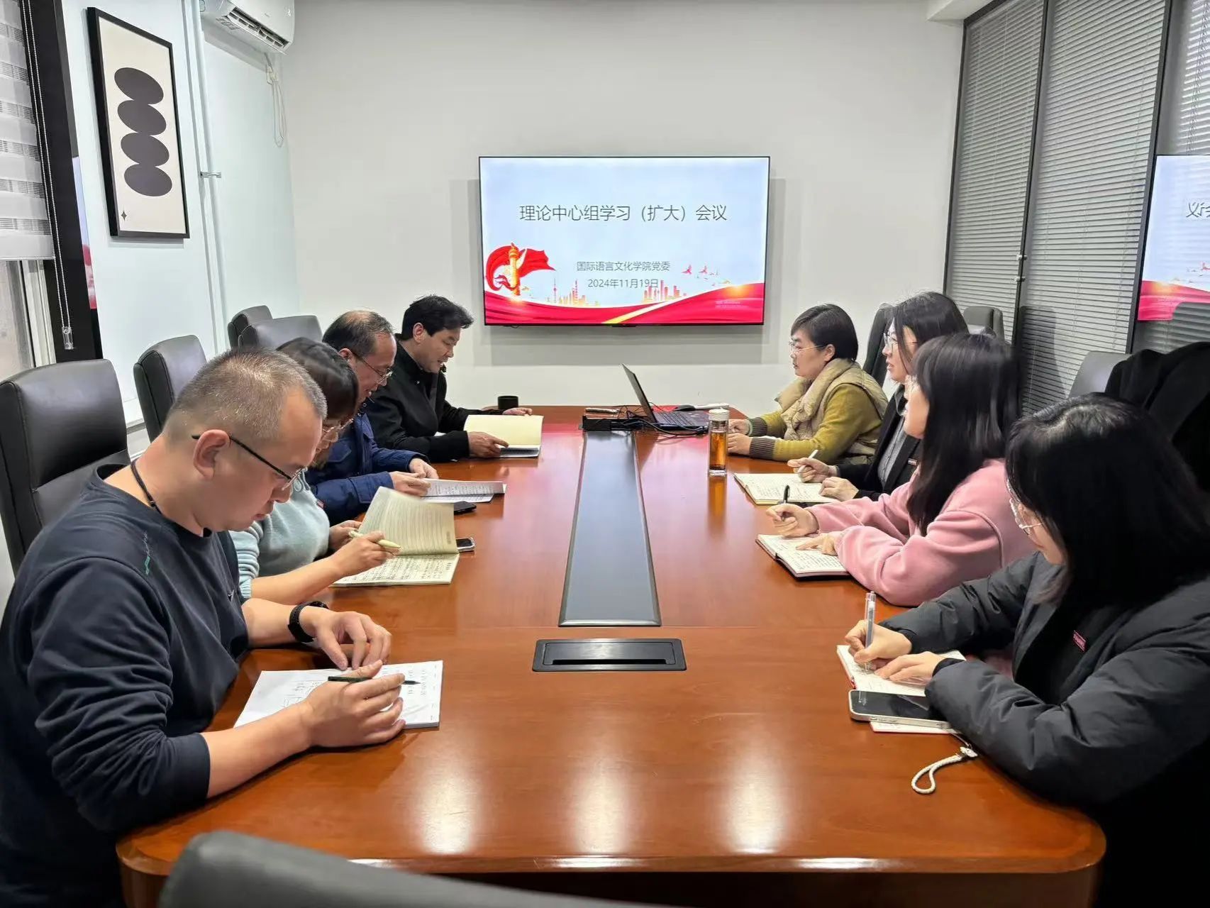 11月19日下午,sjb世俱杯官方网站党委召开理论中心组学习(扩大)会议,学院领导班子,党委委员和师生党支部书记参会。党委书记宇文永康主持会议。