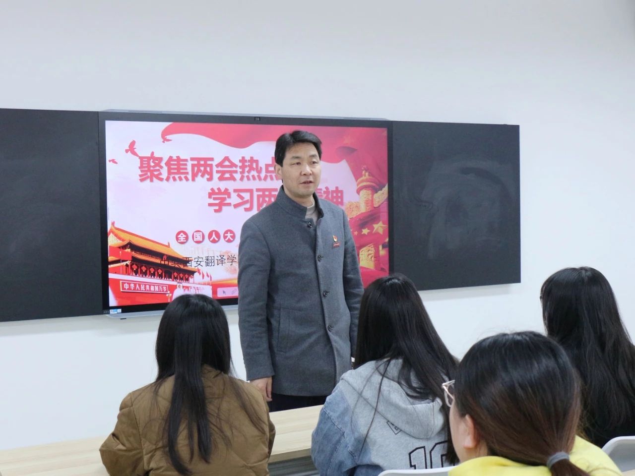 为深入学习贯彻两会精神,引导青年学子深刻领悟两会精神内涵,3月10日下午,sjb世俱杯官方网站党委组织学生党员集中学习两会精神。党委副书记宇文永康出席并讲话,党委组织委员蒋敏,第二党支部书记李潇琦以及全体学生党员到场参加。第三党支部书记黄丽娜担任主持。