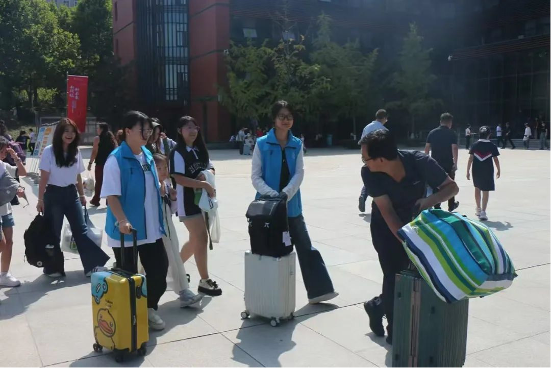 当新同学们踏出大巴车的那一刻,热情洋溢的志愿者们立即迎上前,细心地协助大家搬运行李,确保每位同学的物品都能安全无恙。在志愿者的引领下,大家有序地前往本学院的注册点完成报到手续。随后在志愿者的陪伴下,同学们顺利抵达西区乘车点,乘坐便捷的校内摆渡车,直奔西区新生公寓楼,为即将开始的大学生活做好充分准备。