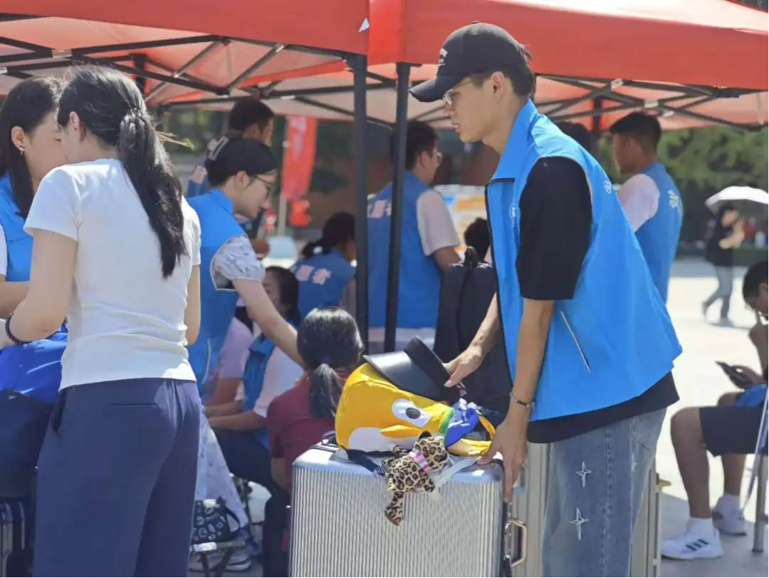 在志愿者的引领下,新生们的问题得到了及时解答,原本沉重的行李仿佛也变得轻盈。志愿者们亲切的笑容和耐心的指导,如同一缕阳光,驱散了新生初入大学的紧张与不安,让他们感受到了家的温暖。