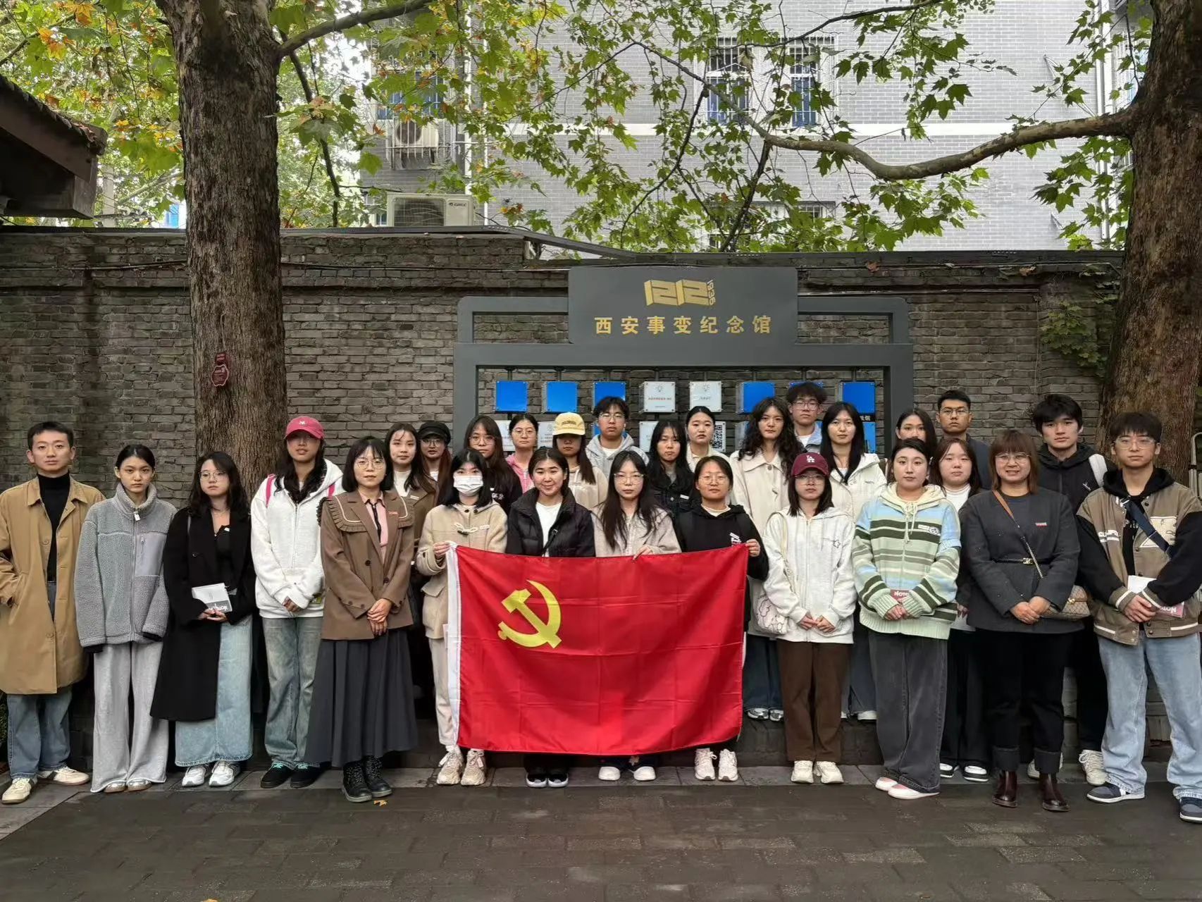 为进一步推进高校思政政治教育工作,切实加强辅导员队伍的思政能力和水平,11月1日上午,sjb世俱杯官方网站举办了以“传承红色基因,坚定理想信念”为主题的辅导员队伍精准思政能力提升红色教育基地实践活动。党委组织委员蒋敏,学生党支部书记黄丽娜、李潇琦,辅导员黄仁秀迪和30余名本学期发展对象及少数民族学生代表一同前往西安事变纪念馆进行红色教育基地实践。