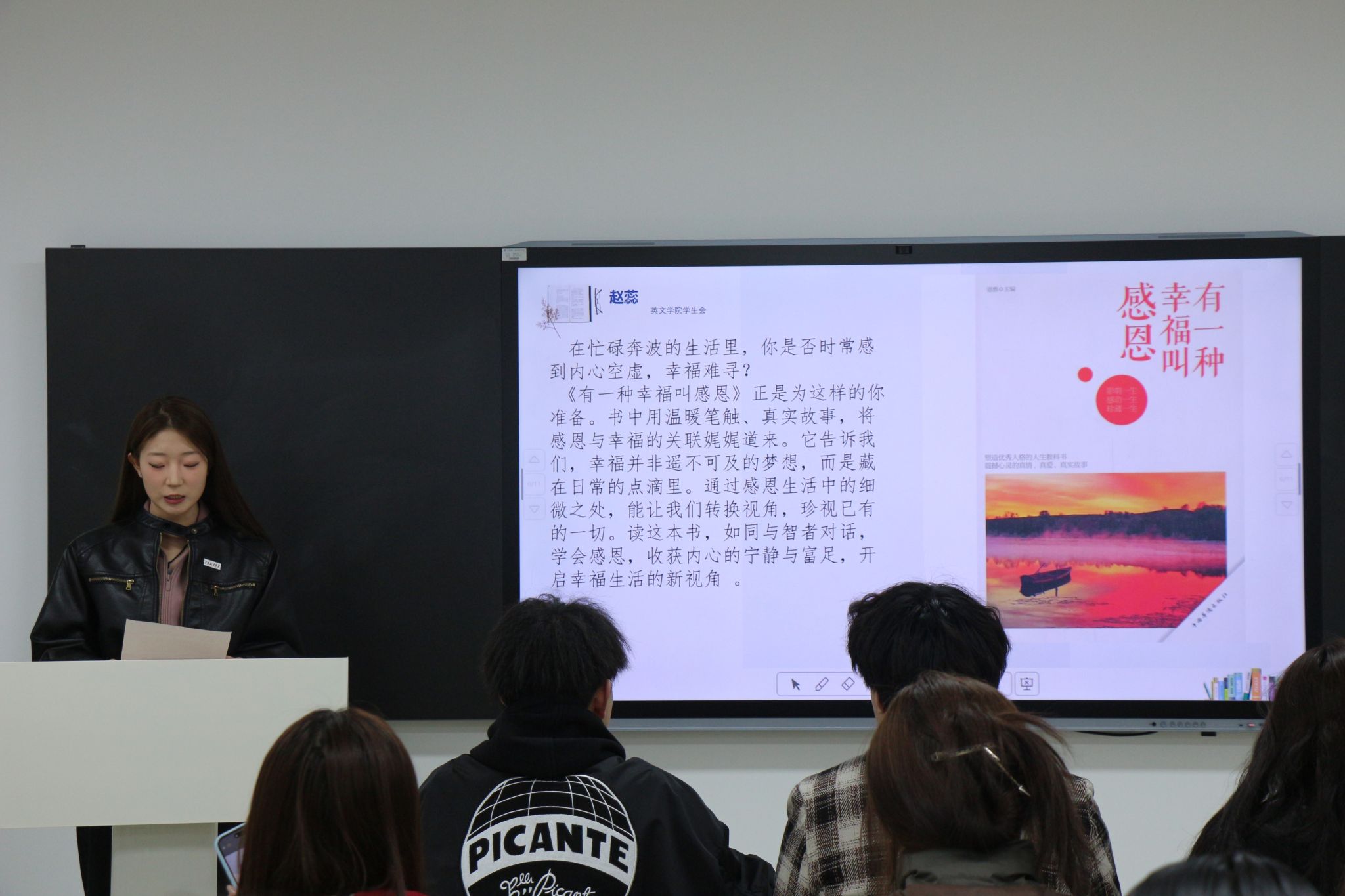 艺术与设计学院学生会主席团成员陈秘表示,此次sjb世俱杯官方网站、英文学院、艺术与设计学院学生会共同举办感恩读书分享会,旨在借书中故事和文字让大家理解感恩,这是学生成长的宝贵契机。校园中大家常忽视老师和同学的付出,但分享会能打破这种麻木,希望大家分享读书感悟,领略知识力量,让感恩融入生活,感悟其内涵。