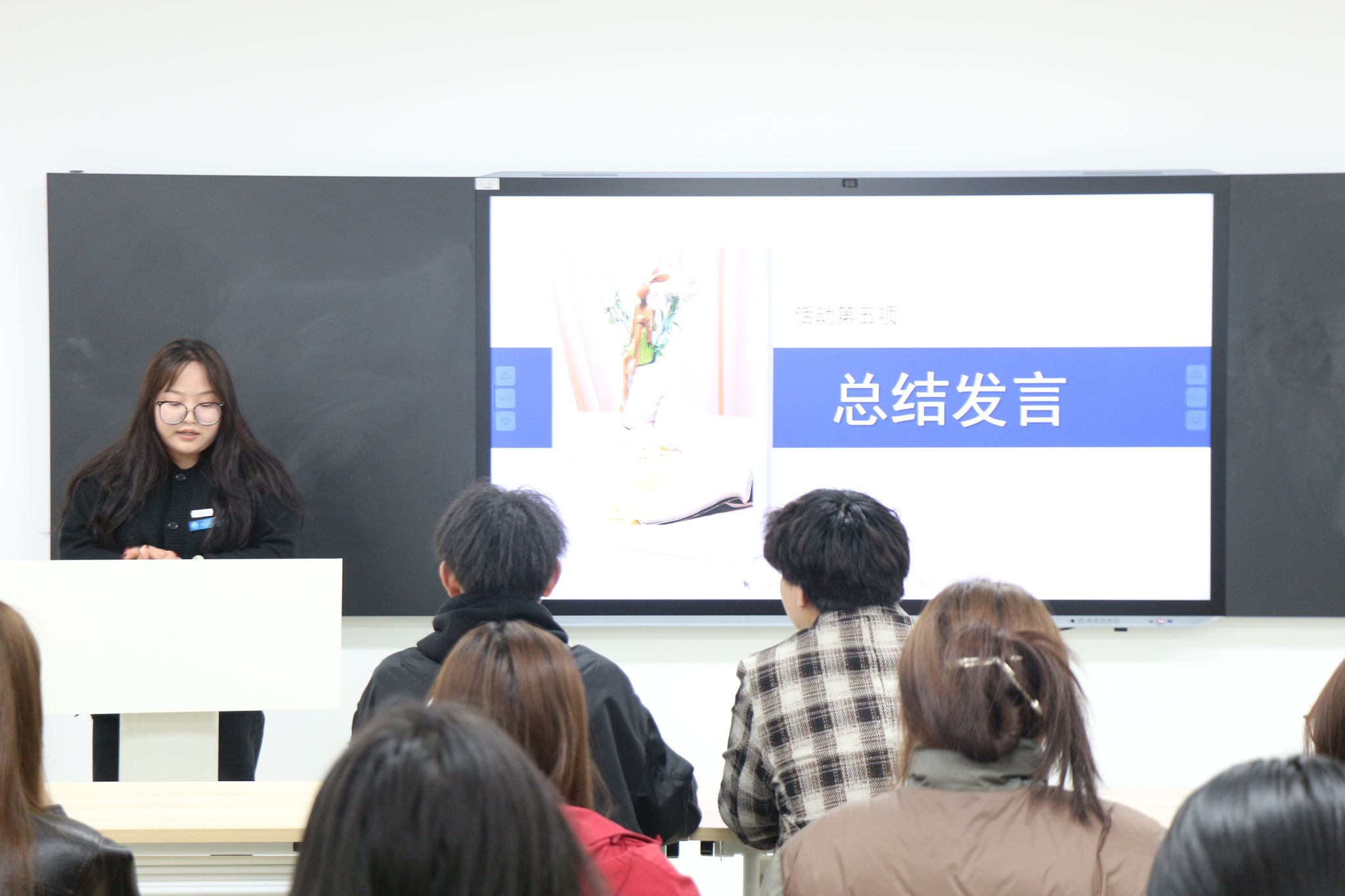 英文学院学生会主席团成员董泽岩进行总结讲话,本次读书分享会形式多样,内容丰富,涵盖了多个精彩环节,为大家带来了一场充实的阅读盛宴。读书是一场永无止境的心灵旅程,它能拓宽我们的视野,丰富我们的内心世界。希望同学们以此次分享会为契机,保持对阅读的热爱,将阅读融入日常生活,让读书成为一种习惯。