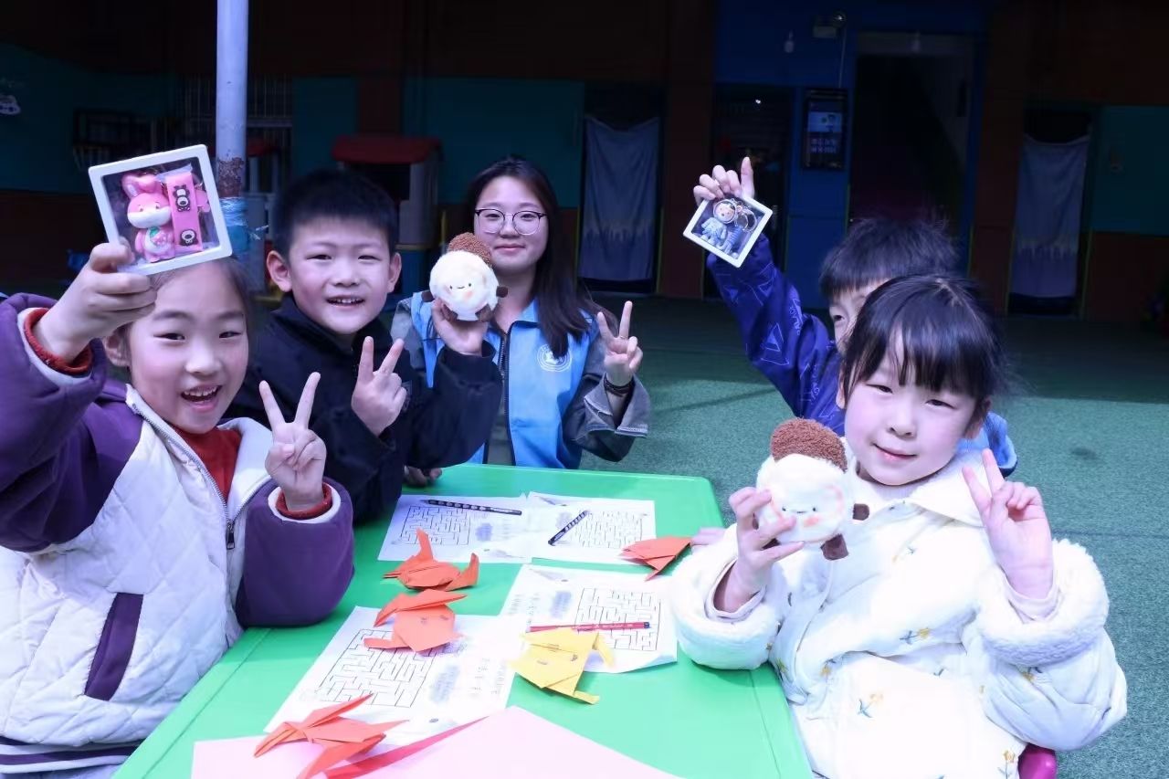 在活动即将结束时,志愿者们取出精心准备的卡通玩偶赠予孩子们。小朋友们欢呼雀跃,争相举起心爱的玩偶与"大哥哥大姐姐"们合影留念,纯真无邪的笑颜如花朵般绽放,将这温馨美好的瞬间永远留存在春日的暖阳之中。