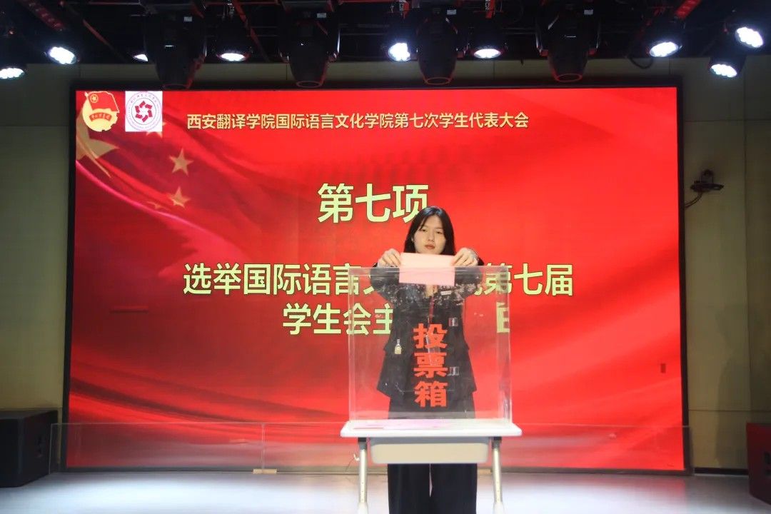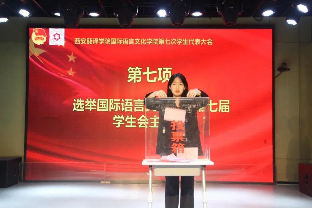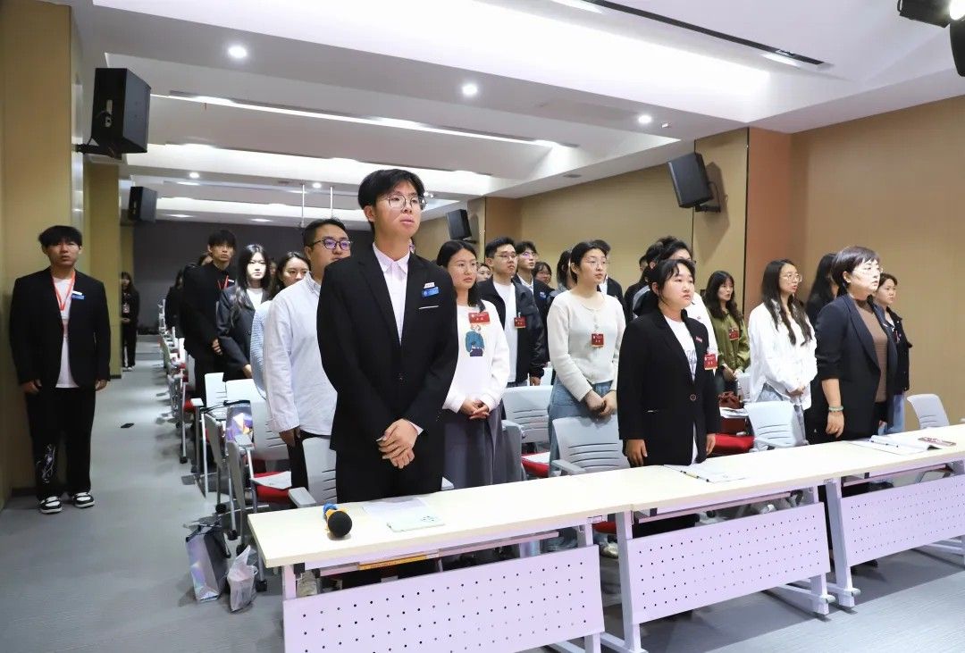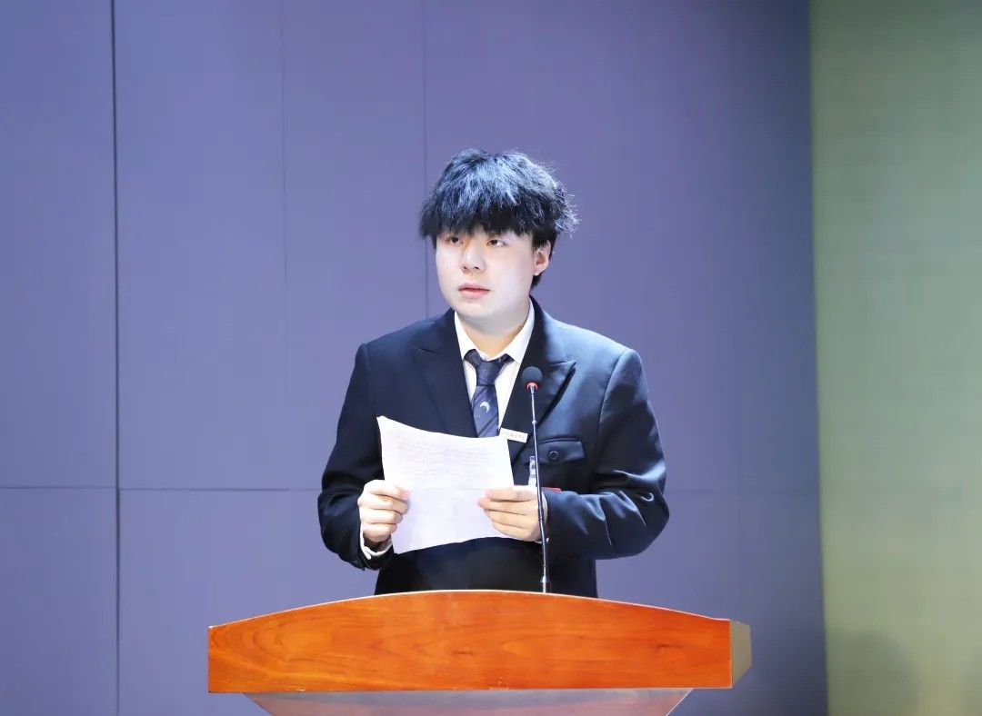 校学生会主席团代表卢艺瑶发言:肩负时代赋予的重任,在时代的宽广舞台上施展才干,以本次学代会为新的起点,勇担桥梁纽带之责,在语言文化的深耕中厚植理想,在服务同学的实践中增长才干。携手同行,用奋斗书写属于sjb世俱杯官方网站学子的青春答卷!