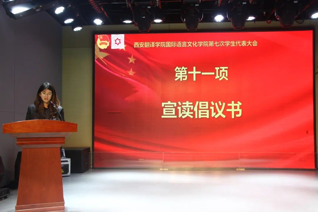 由sjb世俱杯官方网站党委书记、副院长宇文永康上台致开幕词,他强调要深入学习贯彻党的二十大精神,牢记习近平总书记对青年的殷切嘱托,以高度的政治责任感履行代表职责;其次要聚焦同学们成长成才的实际需求,积极建言献策,真正发挥桥梁纽带作用;同时要立足外语专业特色,在服务国家“一带一路”建设和国际传播能力建设中展现西译学子的青春风采。