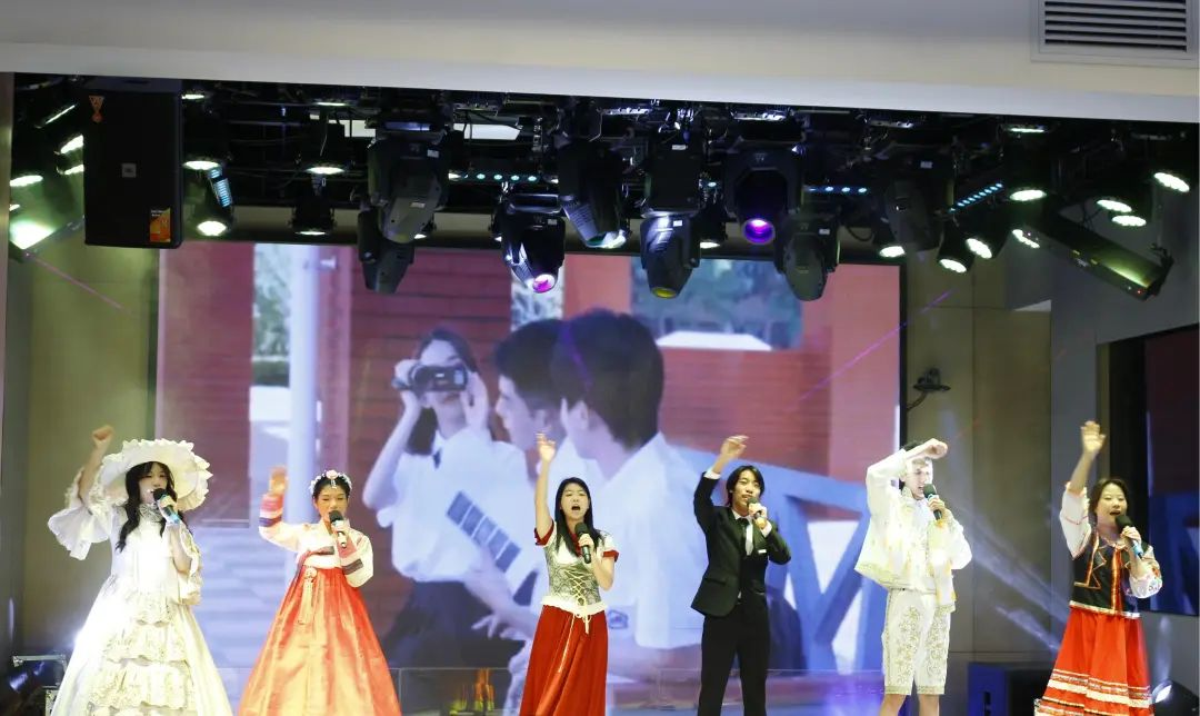 同学们登场,为师生带来精彩的表演。他们歌声婉转,尽展传统文化韵味,声线灵动,诠释异域风情台下观众沉浸其中,掌声与喝彩不断,青春活力与艺术魅力在此刻尽情绽放。