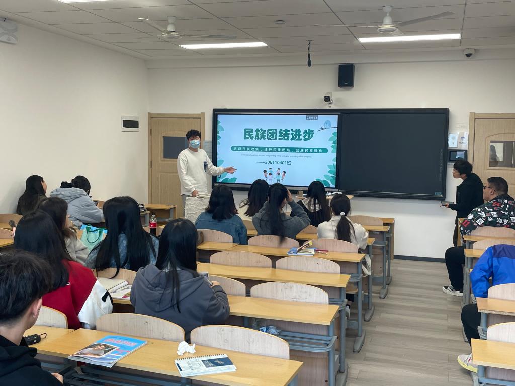 组织专题学习,开展讨论交流。各班级积极响应学院号召,以不同形式组织召开民族团结主题教育班会,学习习近平总书记在中央民族工作会议上重要讲话精神、习近平总书记在西藏考察时的重要讲话精神等。同时,组织学生在学习强国平台上进行专项答题。各班还开展了学习讨论,交流学习心得。通过学习,使广大同学加深了对我国民族政策的了解,提高了思想觉悟,自觉把思想和行动统一到习近平总书记重要讲话精神上来。