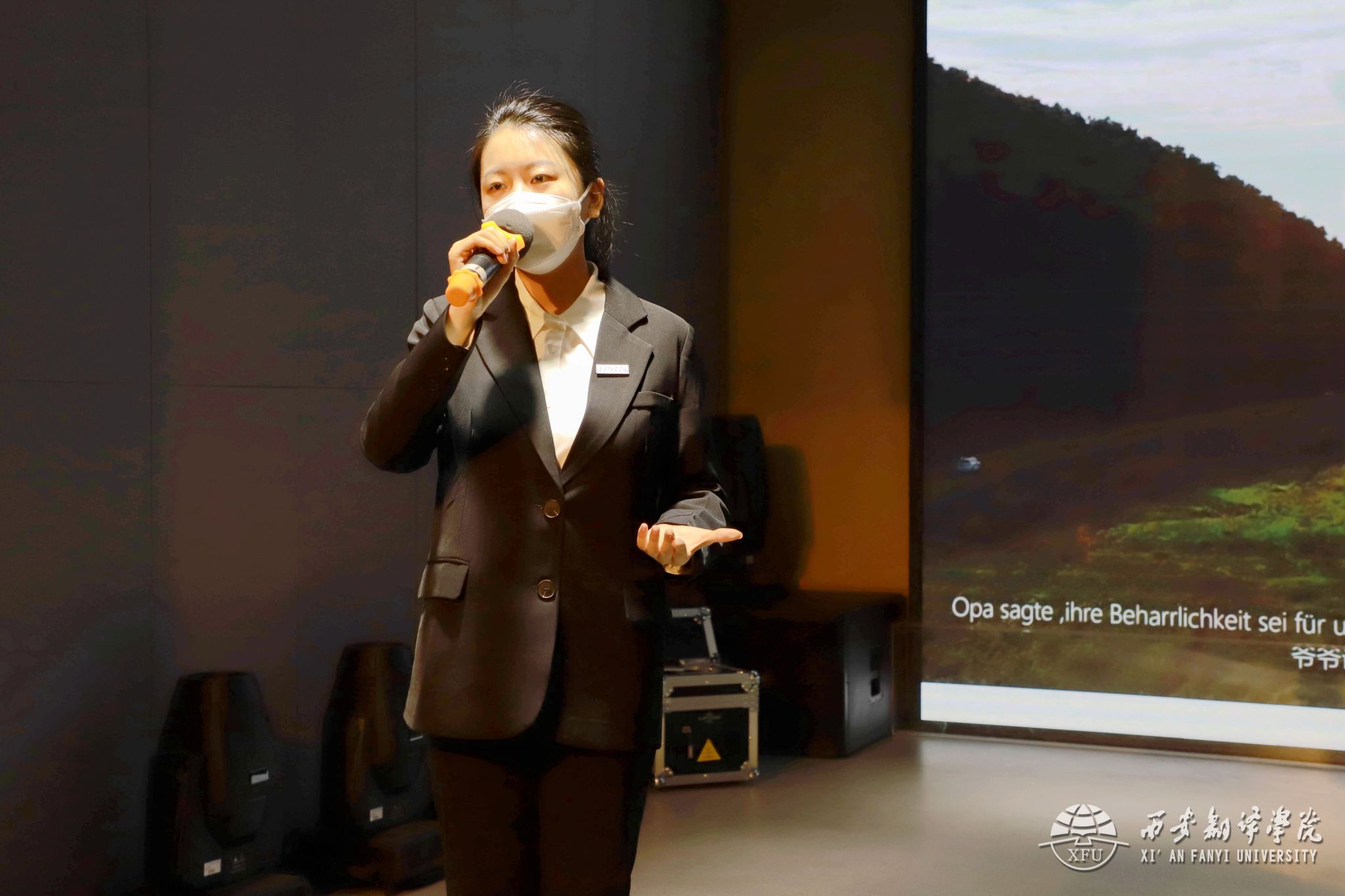 经过激烈角逐,共有六支队伍进入决赛。比赛在诗情画意的开场舞《烟雨行舟》中拉开帷幕。德语专业同学带来视频《塞罕坝的三十六年》,用流利的德语发音将塞罕坝荒原变林海的故事娓娓道来,在展示人工林绿草如茵、牛羊遍地的同时,高度赞扬了塞罕坝护林人艰苦创业、无私奉献的卓越精神,赢得现场观众的阵阵掌声。疫情突袭,多地被迫按下暂停键,西班牙语专业学生带来视频《疫情当前,青年请出列》,通过视频展现了积极响应号召投身疫情防控志愿者行列的西译学子们,他们每一个主动融入社区、村镇抗疫的身影,不仅彰显出我校学生的时代责任和使命担当,更突出表达了青年一代的家国情怀。“一口非遗甜,一抹童年味”,法语专业同学带来视频《糖化接龙挑战—舌尖上的非遗甜》,她们用标准的法语展开对糖画历史渊源和复杂工艺的讲述,将糖画蕴含的历史、美术、民俗风情等多种元素和制作中运用的现代手艺进行详细讲解,视频以博主九月的视频为切入点、糖化接龙挑战为契机,展现了当下年轻人对非遗传承的新态度、新做法。最终法语专业同学凭借其出色表现与精彩讲解获得特等奖。