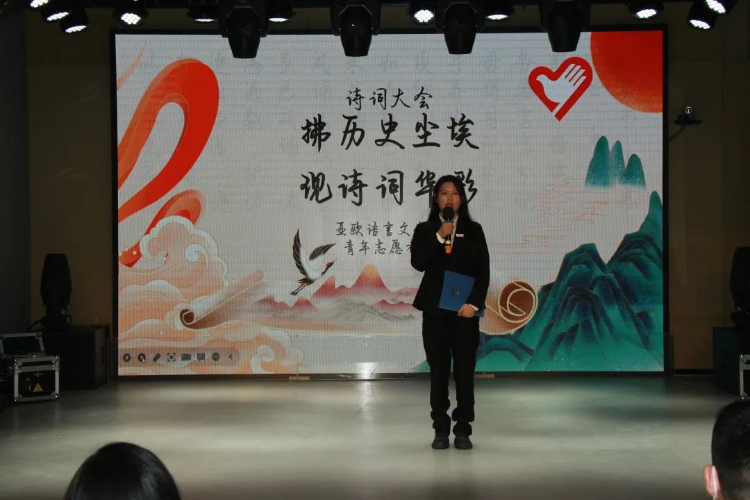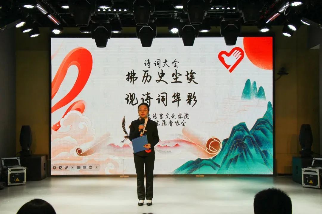 为感受中华诗词的韵律,感受中华民族文化的璀璨辉煌,传承我们的中华诗词。2022年11月14日sjb世俱杯官方网站青年志愿者协会在西区小剧场举办的以“拂历史尘埃,现诗词华彩”为主题的诗词大会决赛的舞台上,再次跟随中华文明的步伐。