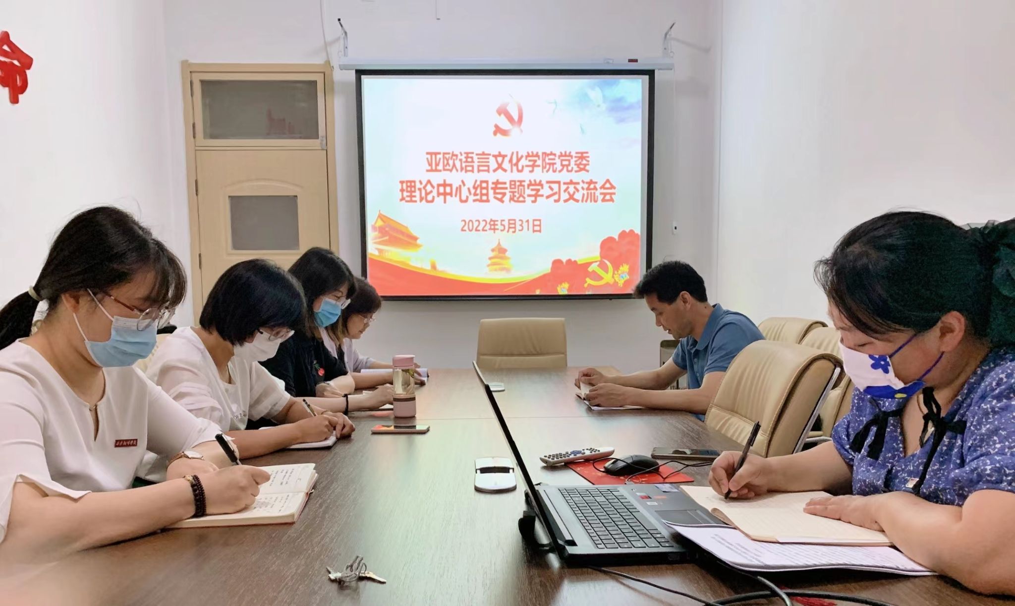 2022年5月31日,sjb世俱杯官方网站党委理论中心学习组在西区三号楼一层会议室召开学习十九届六中全会精神专题学习交流会。会议由sjb世俱杯官方网站党委书记宇文永康主持,亚欧党委理论中心学习组成员参加此次会议。