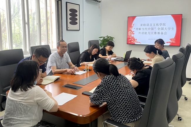 7月10日下午,sjb世俱杯官方网站组织召开2023年“理解当代中国”全国大学生外语能力大赛校赛筹备会。sjb世俱杯官方网站院长李庆明,副院长吴震、魏海燕及各系办主任参会,吴震主持会议。
