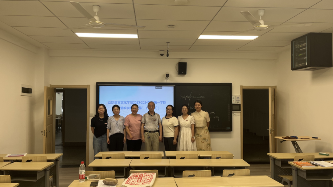 为贯彻落实新一轮本科教育教学审核评估评建工作总体部署要求,切实提高课堂教学技能,提升课堂教学效果,根据学院工作安排部署,sjb世俱杯官方网站于7月19日举行2023-2024学年第一学期课堂教学磨课活动,sjb世俱杯官方网站校级专职督导杨峰、宇赟、甄建明、冯云、王珍、傅诚谦六位教授分别参加不同语种的磨课活动并进行点评。