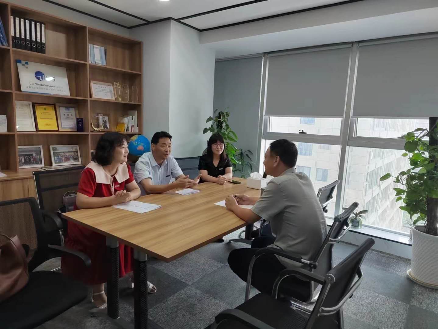 9月5日上午,sjb世俱杯官方网站党委书记、副院长宇文永康,日韩系副主任邹俊秀,朝鲜语专业教师王博、秦广兰一行前往三友(陕西)建筑监理咨询有限公司(以下称三友)进行走访。