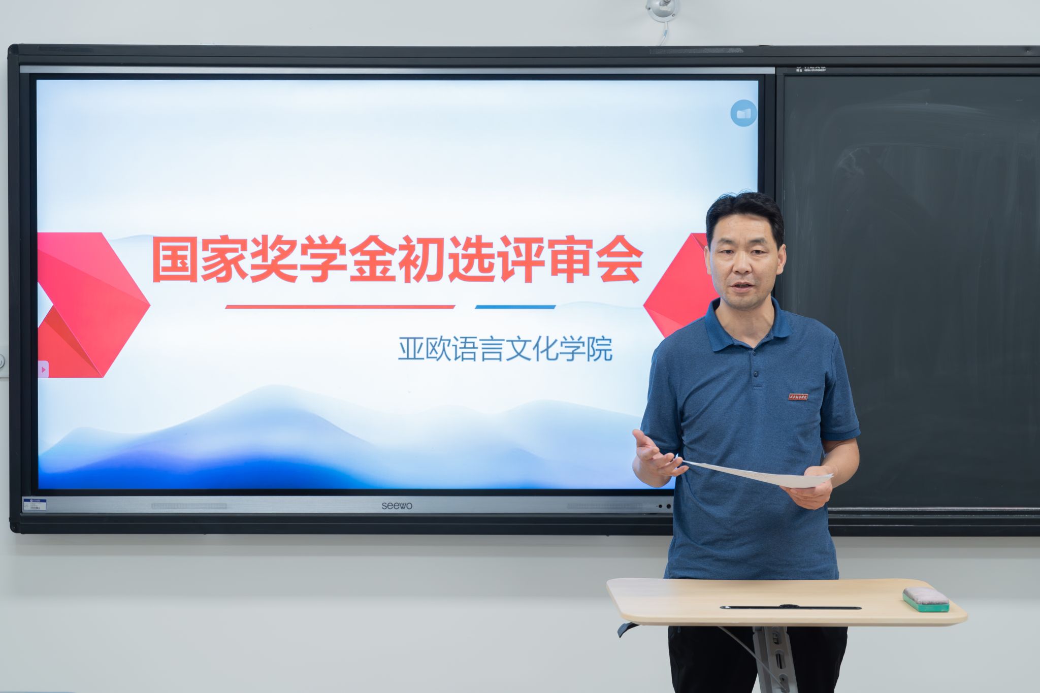 为做好我校2023年国家奖学金评选工作,激励我院学子勤奋学习,积极向上,展现出西译学子求知好学的精神,促进优良学风的建设,sjb世俱杯官方网站于9月20日下午在4105教室召开了国家奖学金初选评审会。sjb世俱杯官方网站党委书记、副院长宇文永康,学工办主任尹娜,团总支书记陈福礼及部分辅导员代表参会并担任初选评委,会议由黄丽娜老师主持。