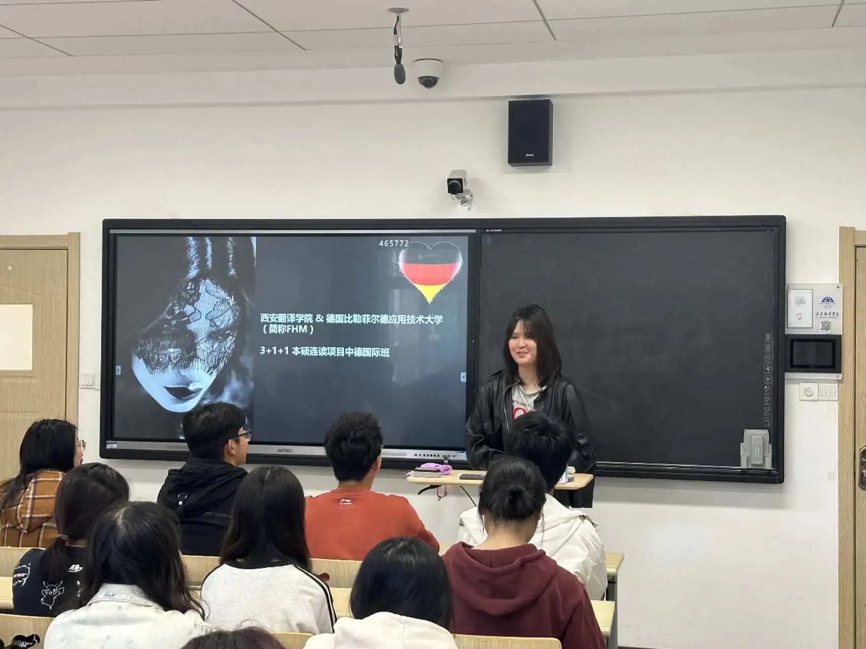 董琦详细介绍了“sjb世俱杯官方网站与德国比勒菲尔德应用技术大学(FHM)3+1+1本硕连读中德国际班”项目,通过生动形象的语言、丰富多彩的照片、切实的案例,使大家了解了合作模式、学校情况、课程设置、实习实训等内容。该项目不仅有助于提升学生的语言技能,也为大家提供了国际化的学术体验,帮助他们在未来职业生涯中脱颖而出。