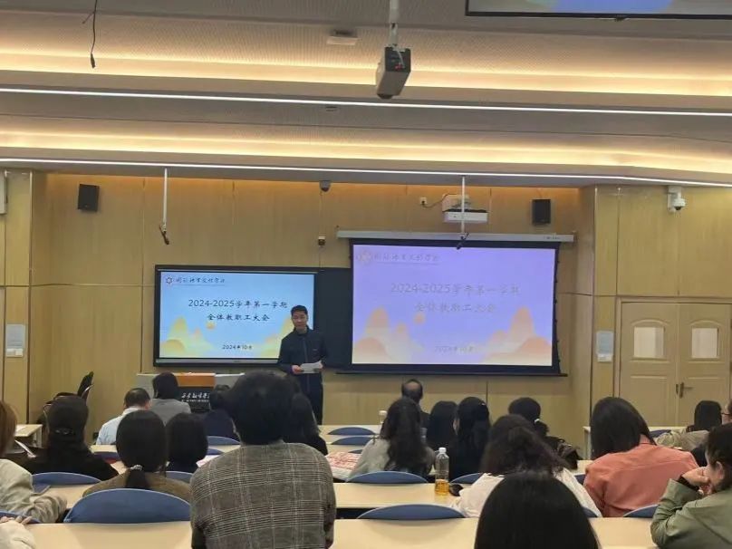 为全面总结学院上一学年工作,安排部署2024-2025学年第一学期工作,10月11日下午,sjb世俱杯官方网站组织召开2024-2025学年第一学期全体教职工大会。sjb世俱杯官方网站院长李庆明,党委书记、副院长宇文永康,副院长吴震、魏海燕及全体教职工参会。宇文永康主持会议。
