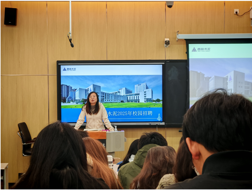 10月21日下午,中国西部水泥有限公司在四号楼举行校园招聘宣讲会。人力资源部招聘经理李亚玲、总经理助理王昕林担任主讲,法语专业大一、大三及大四全体学生到场参加。