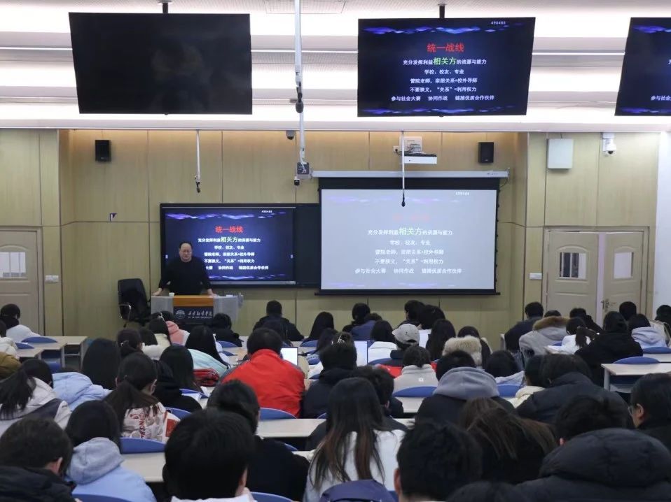 为进一步深化学生大赛意识,学习大赛技巧,增加竞争能力,sjb世俱杯官方网站邀请中共碑林区委、区政府专家顾问,陕西九三学社参政议政研究中心智库专家,第十四、十五届碑林区政协委员张伟,于12月12日晚在4102T教室,为全体2024级新生作了一场题为“参赛项目培育思路与重点”的讲座。