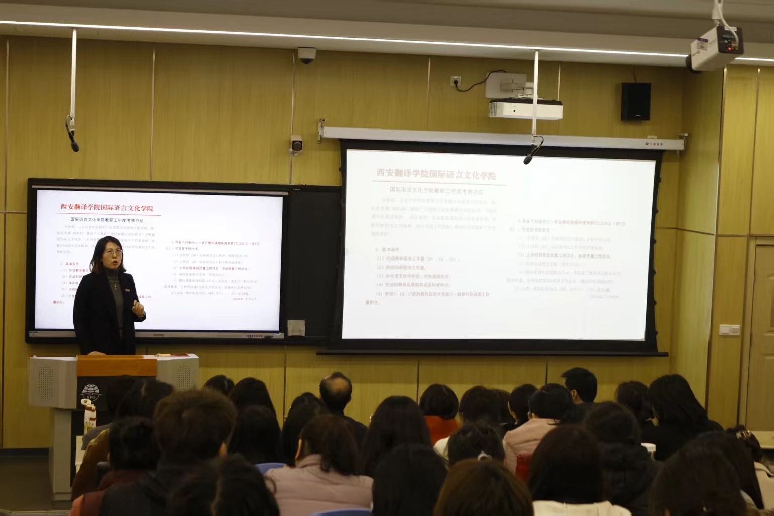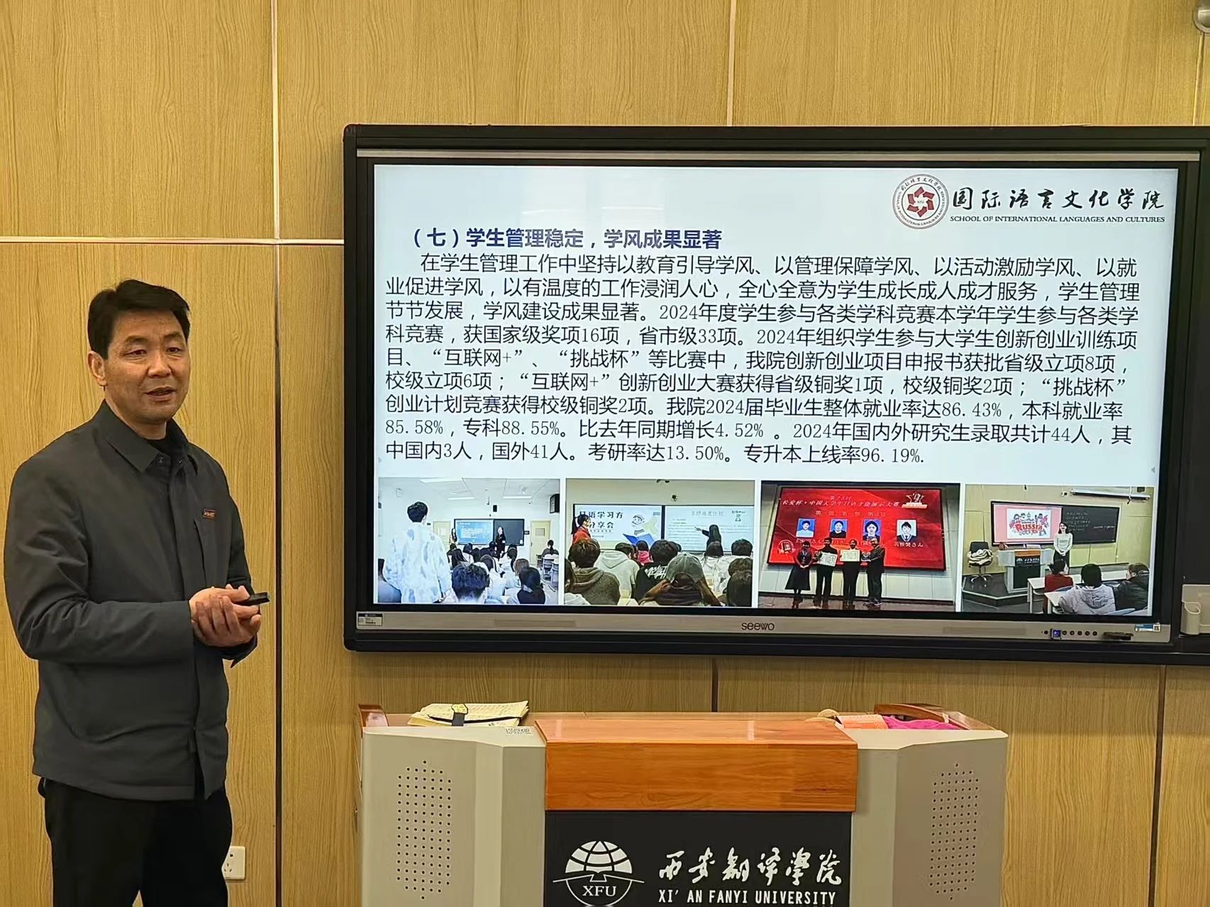 sjb世俱杯官方网站科研副院长魏海燕对2024年度学院科研、国际交流合作情况进行了汇报。她总结了学院2024年国际交流与合作工作开展情况、科研工作总结情况、课题立项及科研成果完成情况,并汇总了2025年度科研课题信息。最后,她对学院年度考核评优相关政策进行了解读,鼓励全体教职工积极参与科研工作,为学院发展贡献力量。