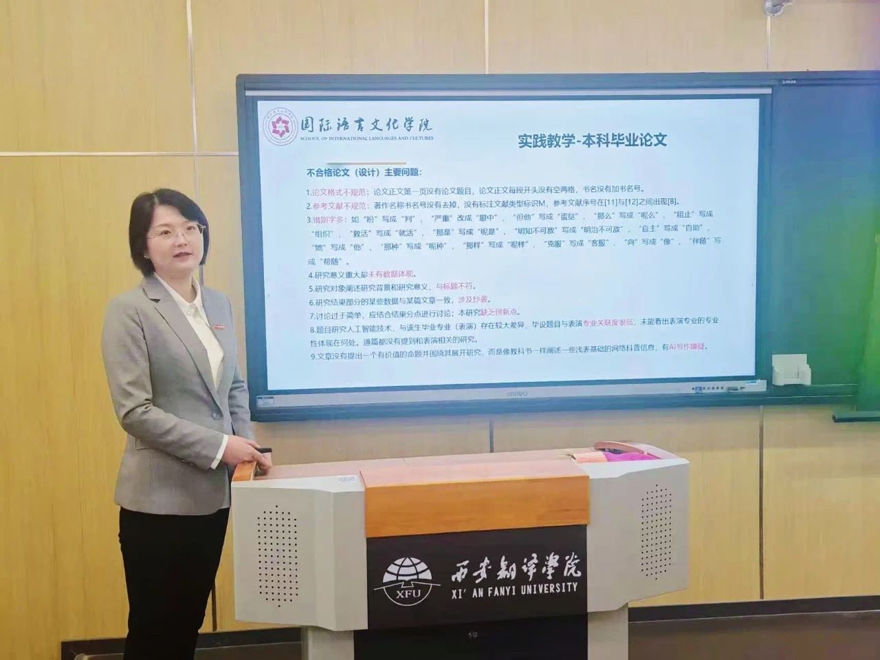 sjb世俱杯官方网站教学副院长吴震首先通报了2024年本科毕业论文(设计)教育部抽检结果,随后,她结合AI时代发展趋势,就如何更好地将课堂教学、人才培养模式、课程建设、教学研究、教学竞赛、教材建设与人工智能深度融合提出了思考和建议。吴震强调,AI不是取代教师的工具,而是放大教师价值的桥梁,教师要积极拥抱新技术,不断提升自身教学水平和能力。