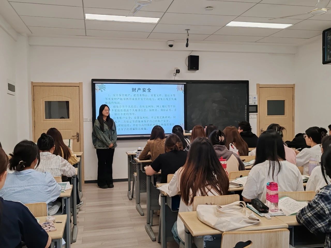 班会上,辅导员结合近期社会热点安全事件和校园典型案例,围绕交通安全、防溺水、防火防盗、防诈骗、网络安全及健康管理等主题展开详细讲解。针对假期出行学生,重点强调遵守交通规则,禁止乘坐非法营运车辆,远离危险水域;针对留校学生,提醒注意宿舍用电安全,妥善保管贵重物品,严格遵守校规校纪。同时,结合当前网络诈骗手段多样化趋势,通过播放反诈短视频,提醒学生警惕兼职刷单、虚假订票、冒充客服等常见骗局,切实做到“不轻信、不转账、不泄露”。