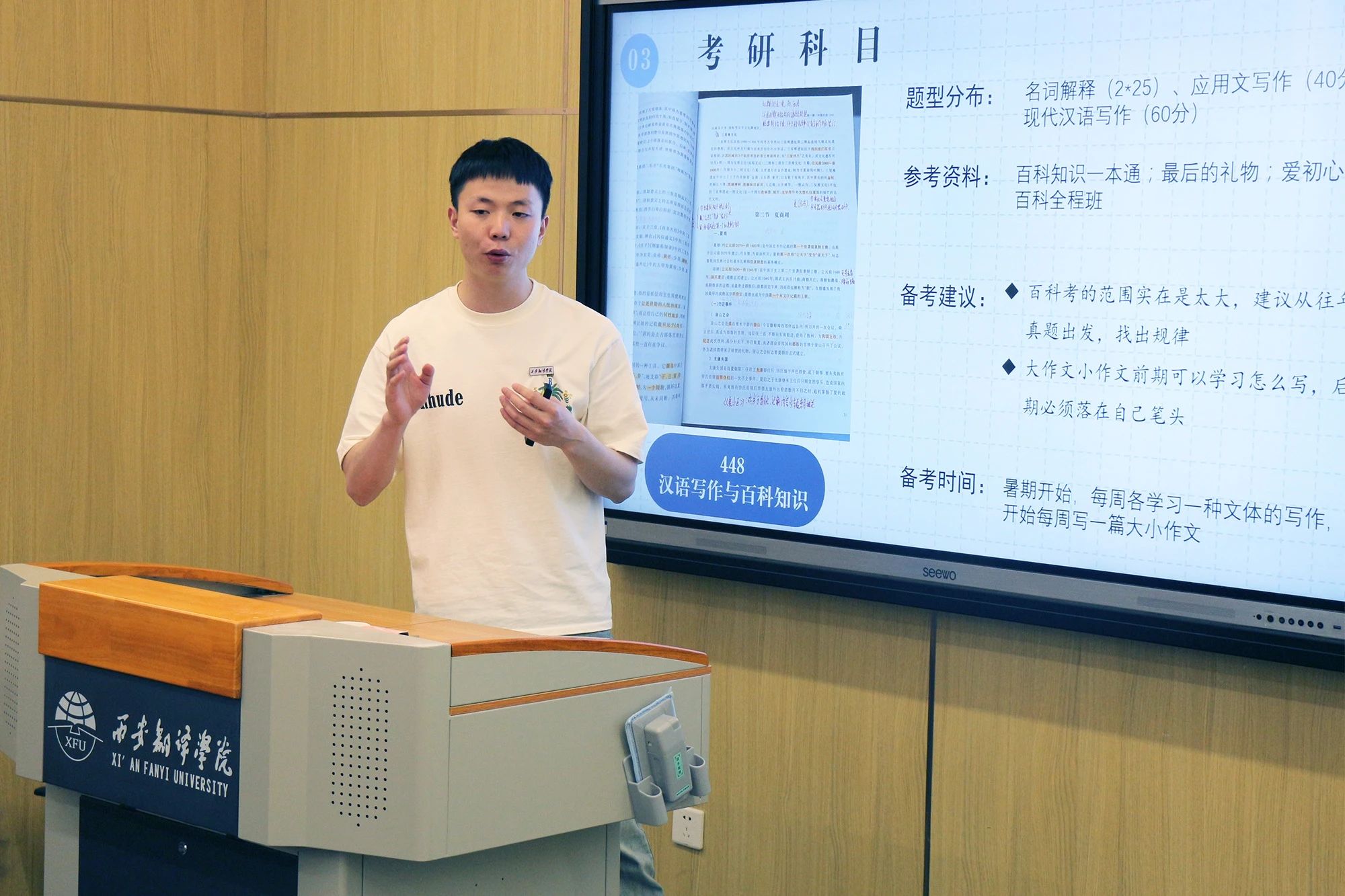 日语专业耿聪同学以云南师范大学为例,系统讲解了院校选择、备考规划、复试准备等全流程要点。他创新性地提出"考研进度可视化表",建议将复习内容量化为具体指标,并现场演示了如何利用该工具进行自我监督。