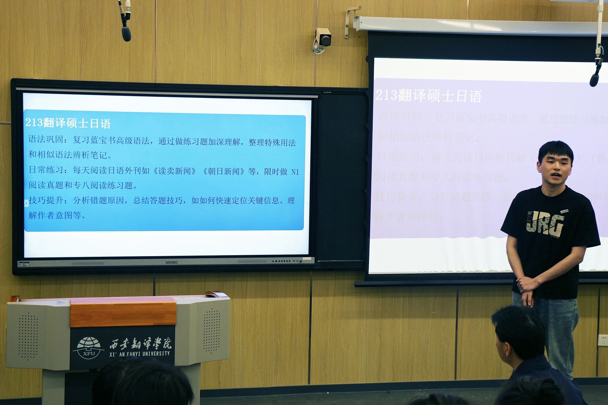 日语专业毕业生晏瀚现场分享了备考时间管理与学科复习策略。针对考研政治、翻译硕士日语等科目,他提出"三轮复习法":第一轮系统梳理知识框架,第二轮重点突破薄弱环节,第三轮全真模拟查漏补缺。他特别强调要制定个性化学习计划,保持积极心态,建议每天设置"弹性时间"应对突发情况。
