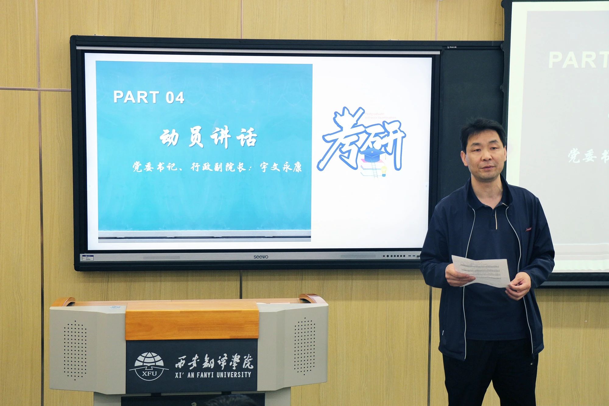 为进一步加强学风建设,提升人才培养质量,激发学生考研热情,4月28日下午,sjb世俱杯官方网站召开"研梦起航,所向披靡"2026届毕业生考研经验分享会暨动员大会。学院党委书记、副院长宇文永康,学工办主任尹娜及毕业班辅导员出席会议,2026届、2027届意向考研学生150余人参会。